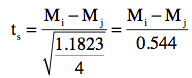 The table shows the value of t for each of the six possible pairwise comparisons.